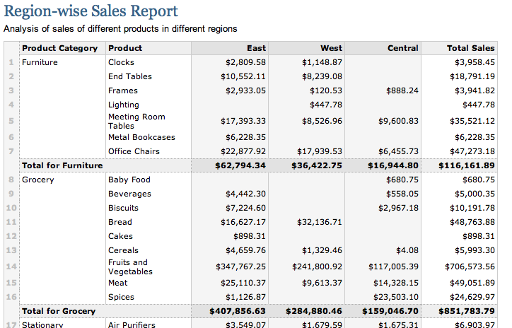 Олег Чибисов привел эту таблицу как пример варианта группировки, в котором названия групп оставались в отдельной колонке. Так же здесь указаны итоги по группам.
